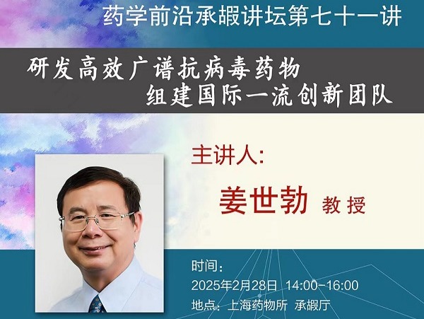 复旦大学姜世勃教授应邀作药学前沿承嘏讲坛第七十一讲